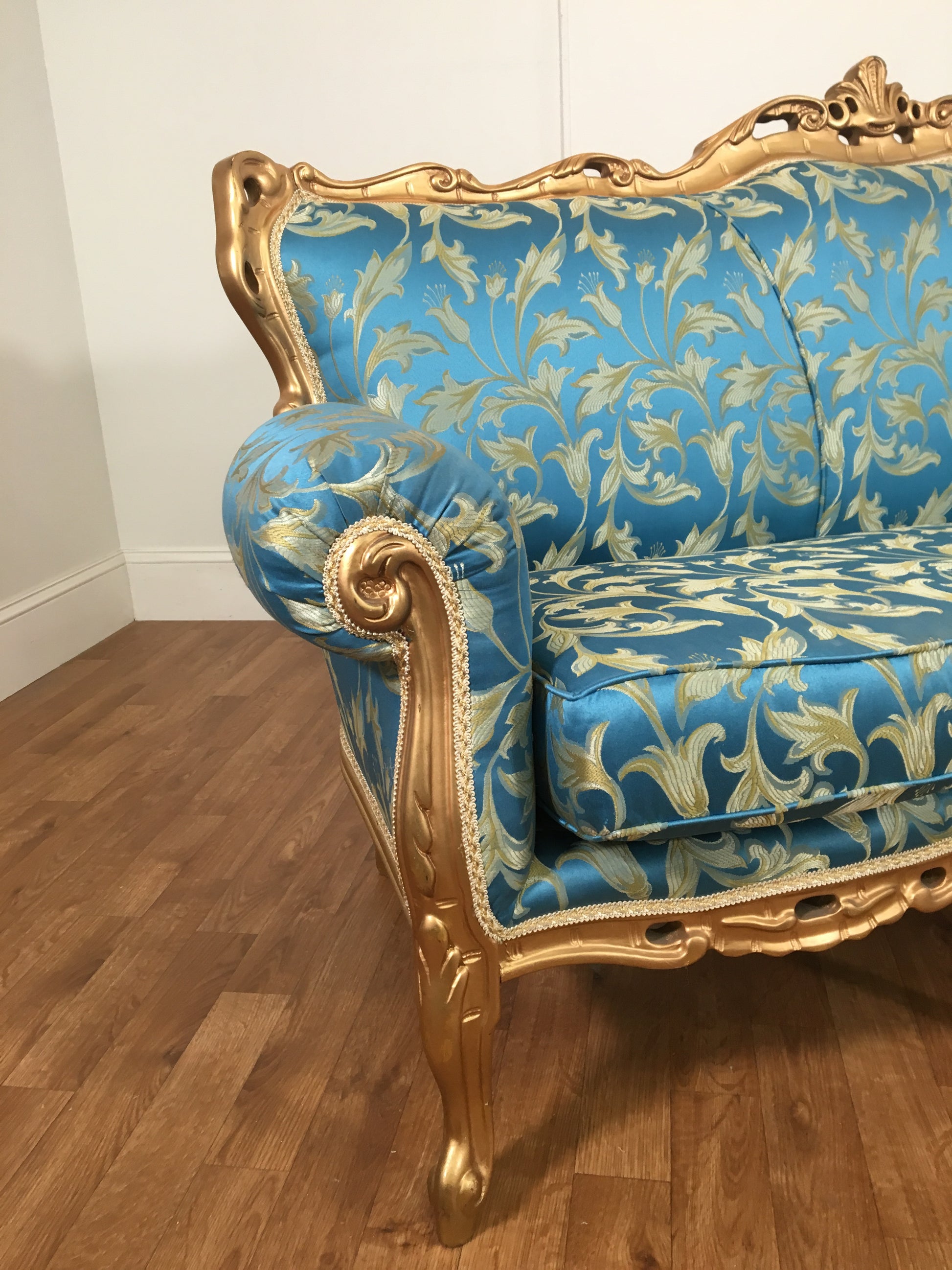 ORNATE ROCOCO GOLD AND ROBINS EGG BLUE COUCH
