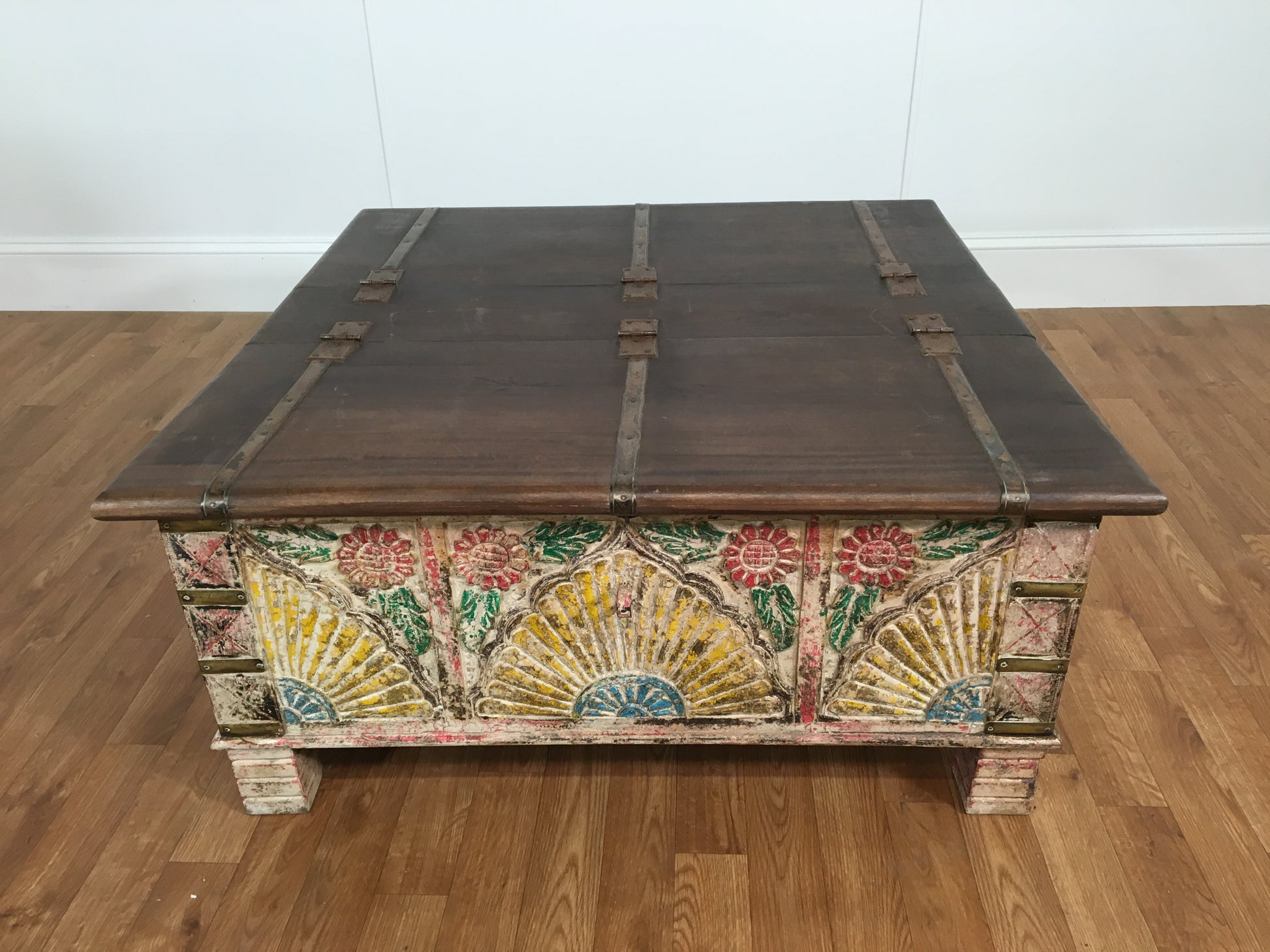 HAND PAINTED INDIAN COFFEE TABLE WITH STORAGE