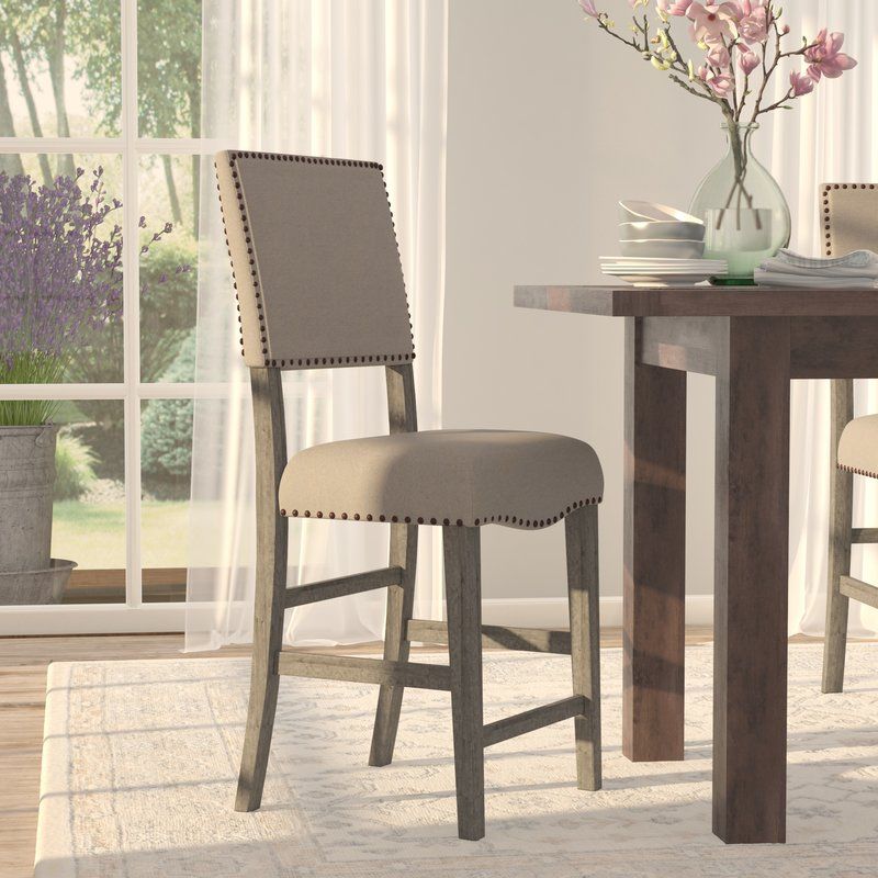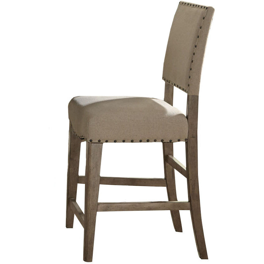 TAN LINIEN DINING CHAIR WITH RIVETS