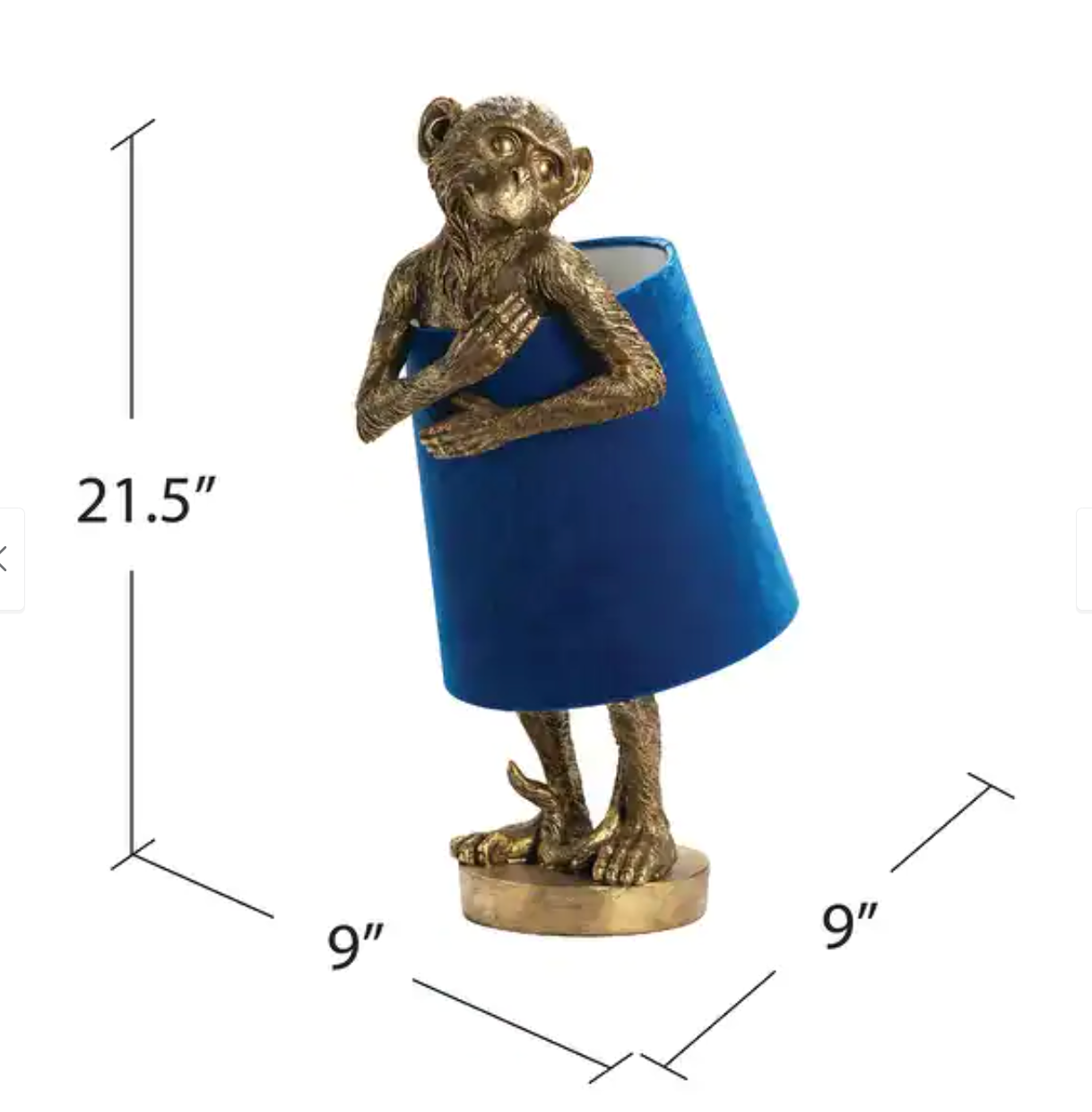 BRASS MONKEY TABLE LAMP WITH BLUE VELVET SHADE