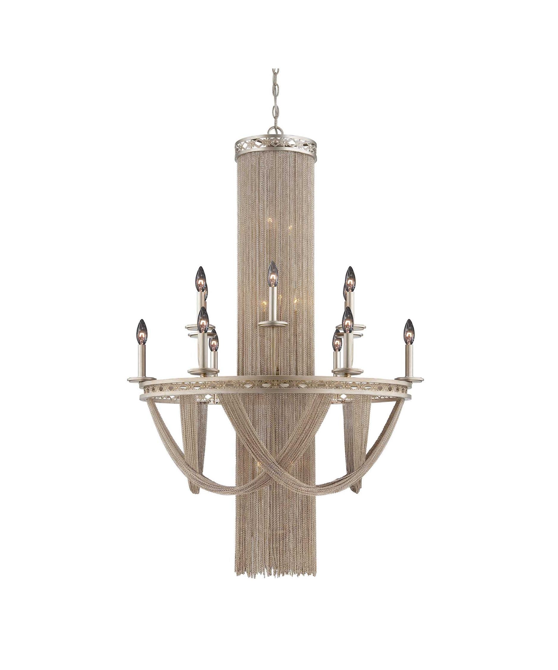 Sleek stainless chain adds a modern touch to classic style. Takes 18 E12 bulbs