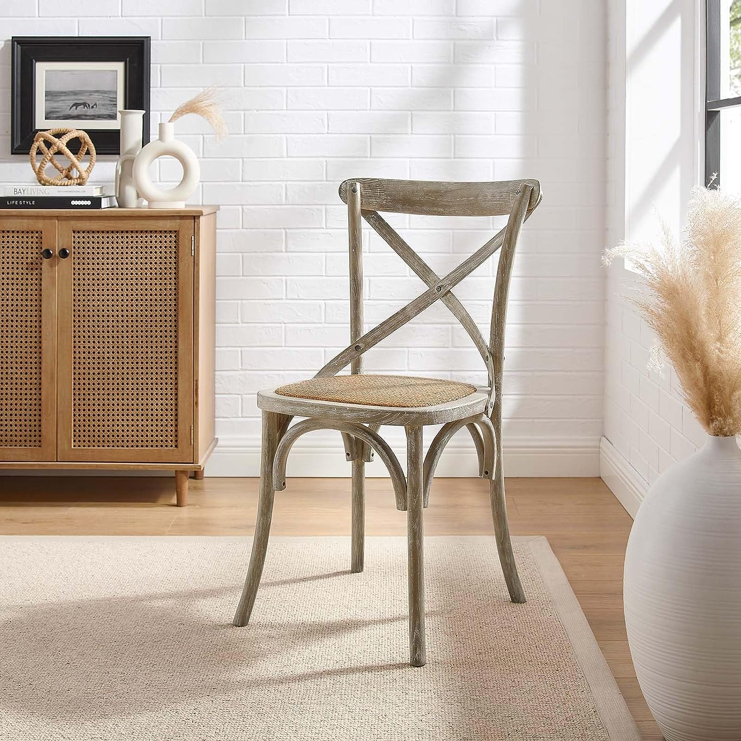 GRAY RATTAN CROSS BACK DINING CHAIRS