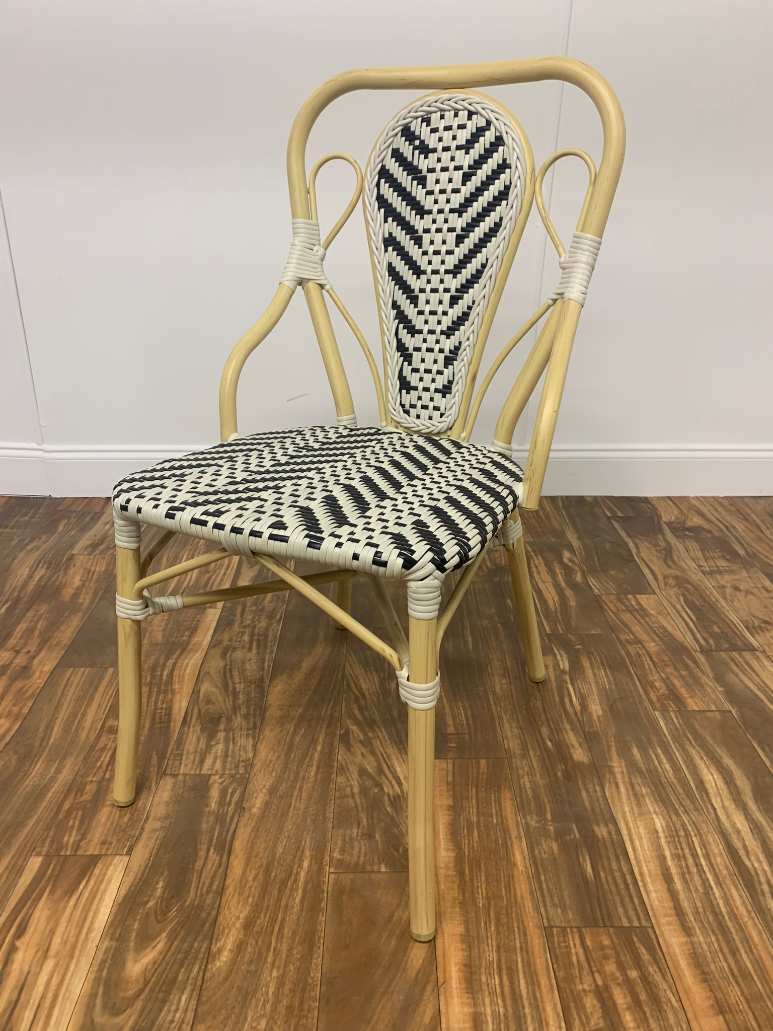 BLACK AND WHITE WICKER RATTAN DINING BISTRO CHAIR