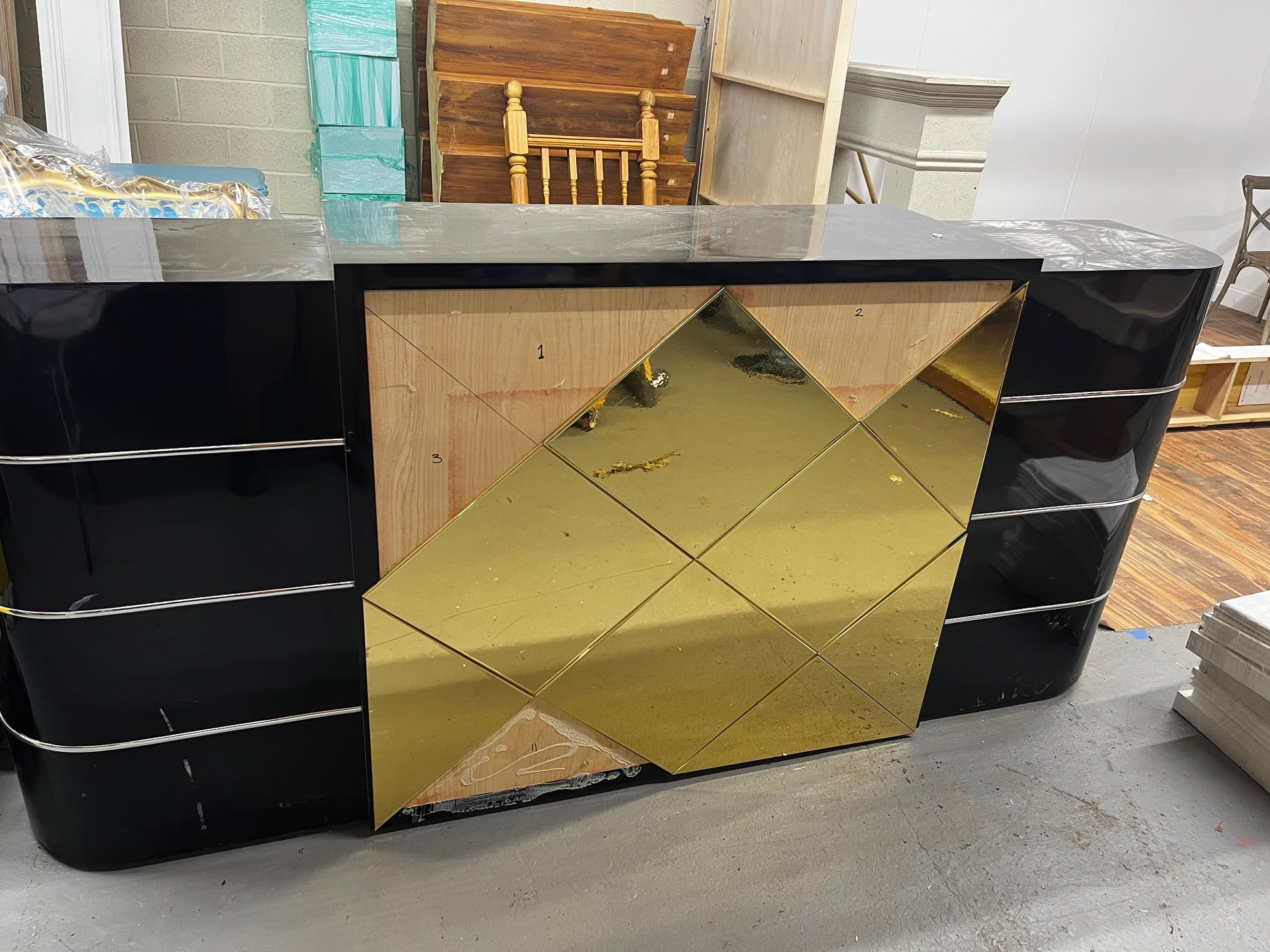 GLOSS BLACK ART DECO BAR WITH GOLD PANELS