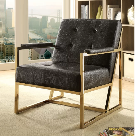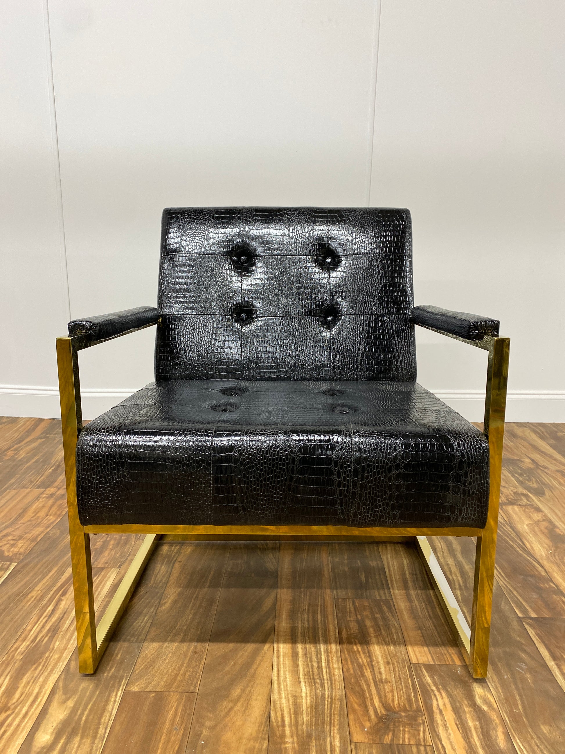 BLACK ALLIGATOR SKIN ACCENT ARM CHAIR WITH GOLD LEGS