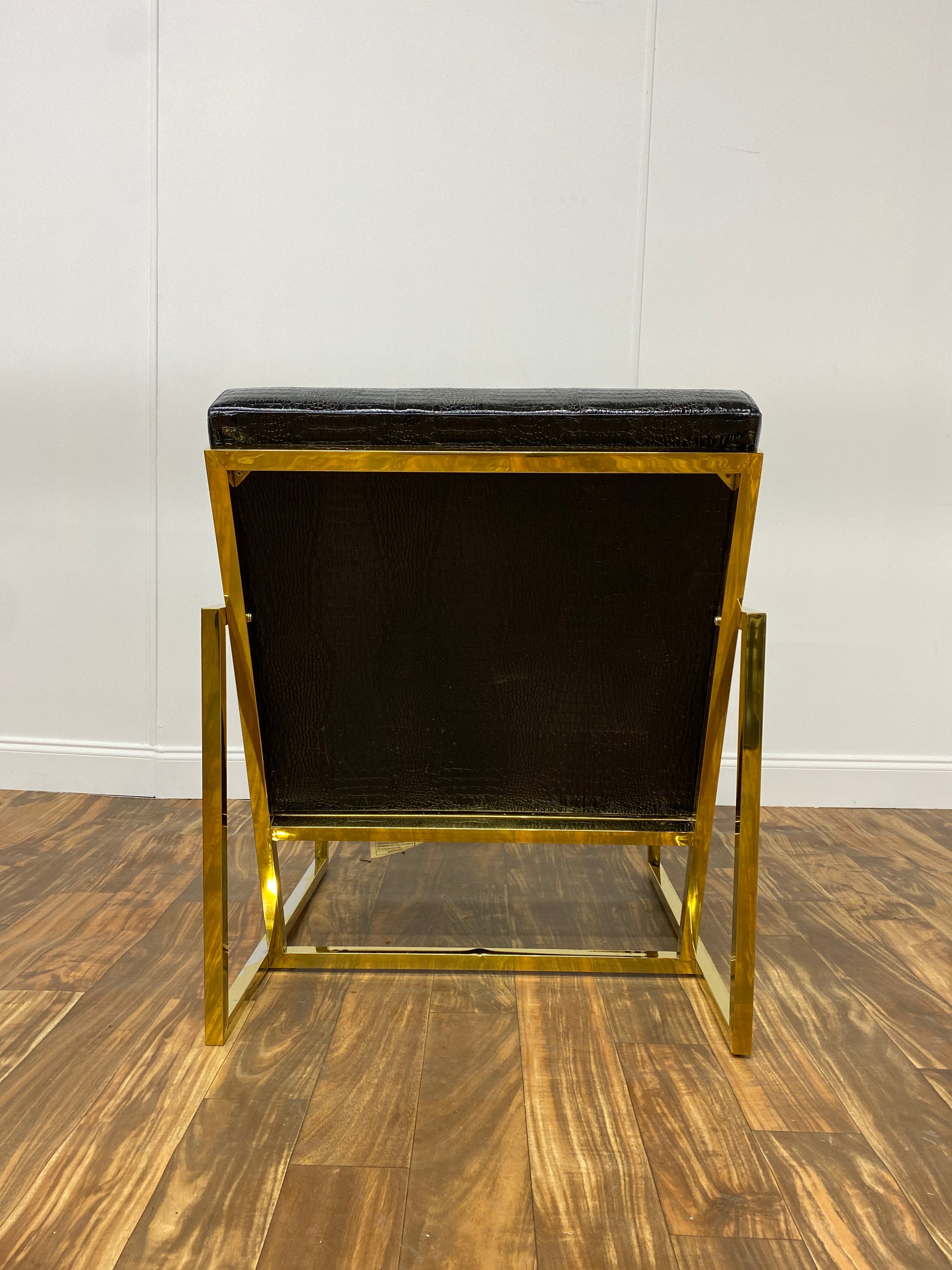 Crocodile textured faux black leather arm chair with gold frame. The high back rest is set with a slight lean for extra comfort.