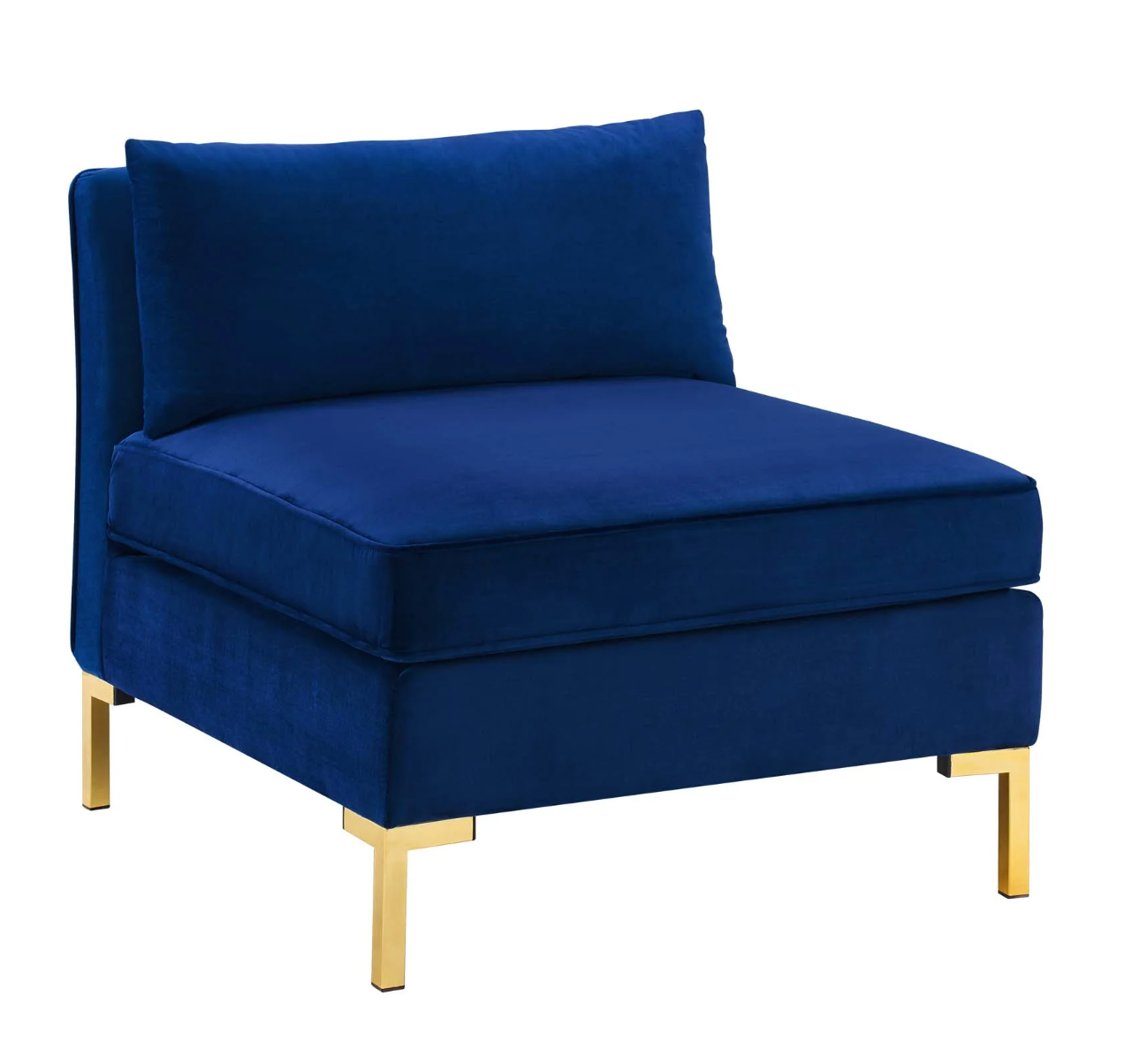 Dark Blue Velvet Armless Chair Piece for Sectional Sofa