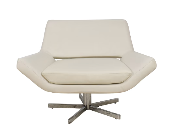 EXTRA WIDE MID-CENTURY WHITE LEATHER SWIVEL OFFICE / ACCENT CHAIR