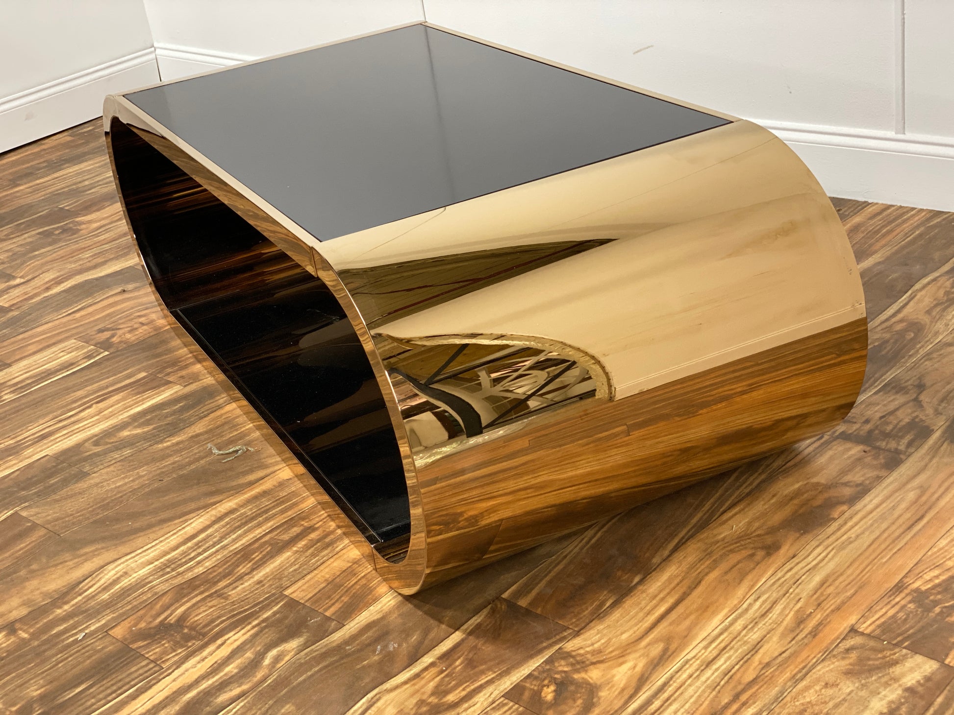 BRONZE AND BLACK GLASS COFFEE TABLE
