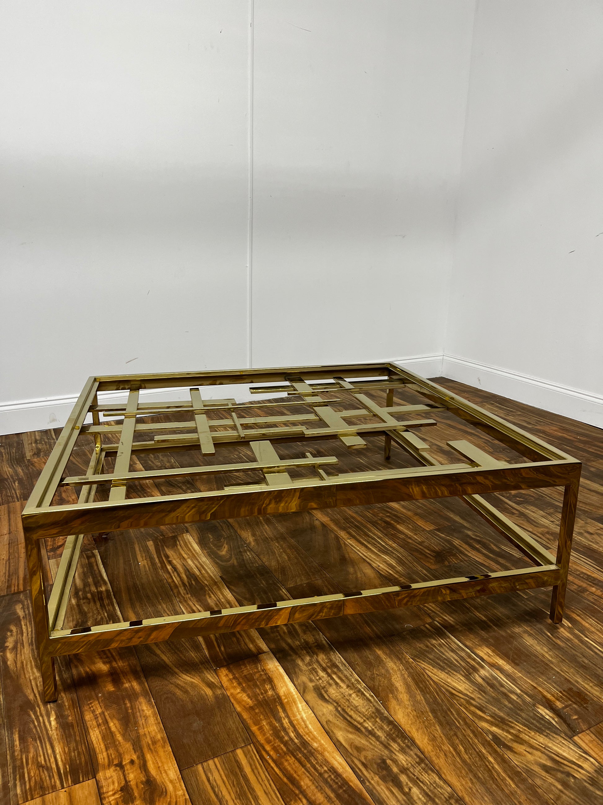 GOLD METAL RECTANGULAR GLASS TOP COFFEE TABLE