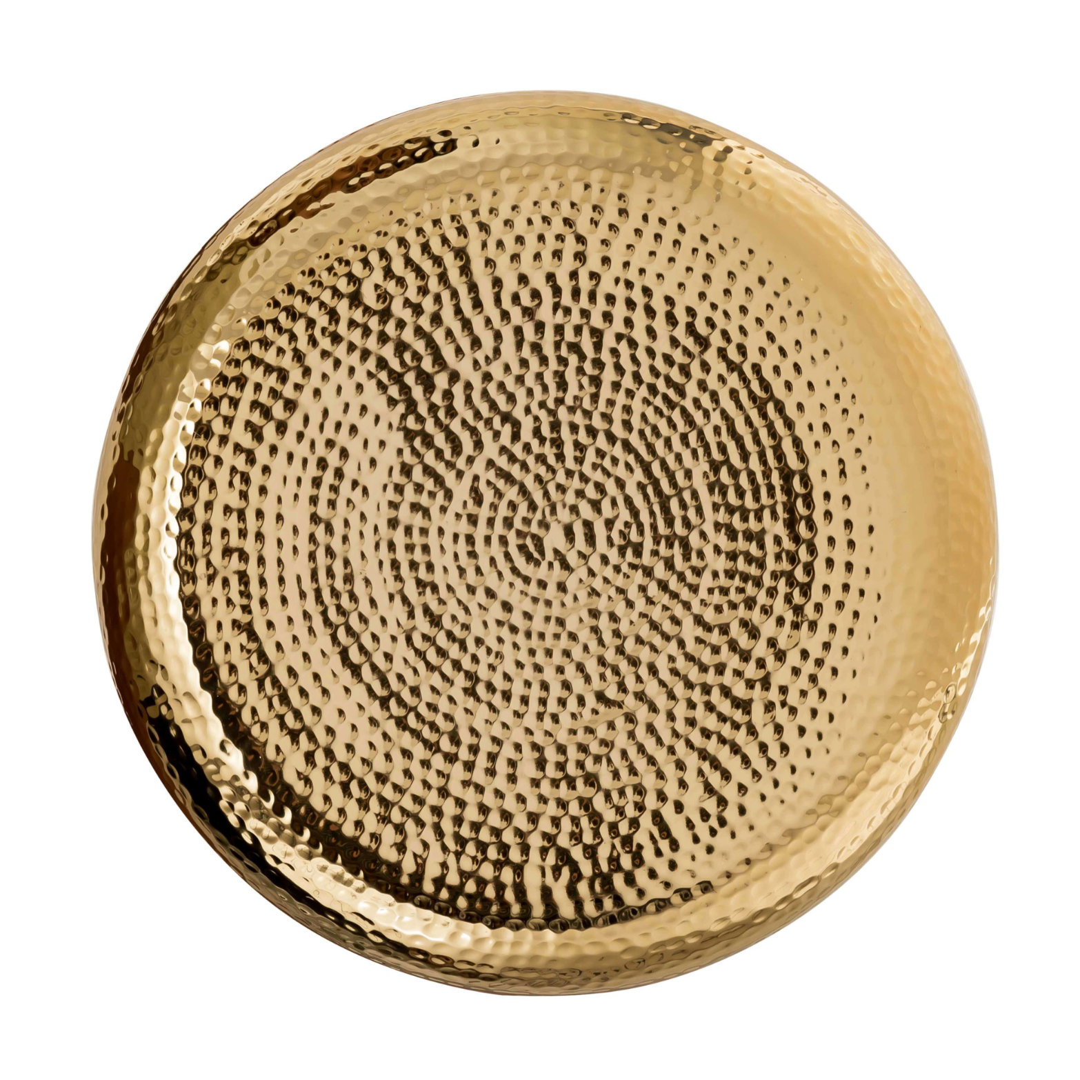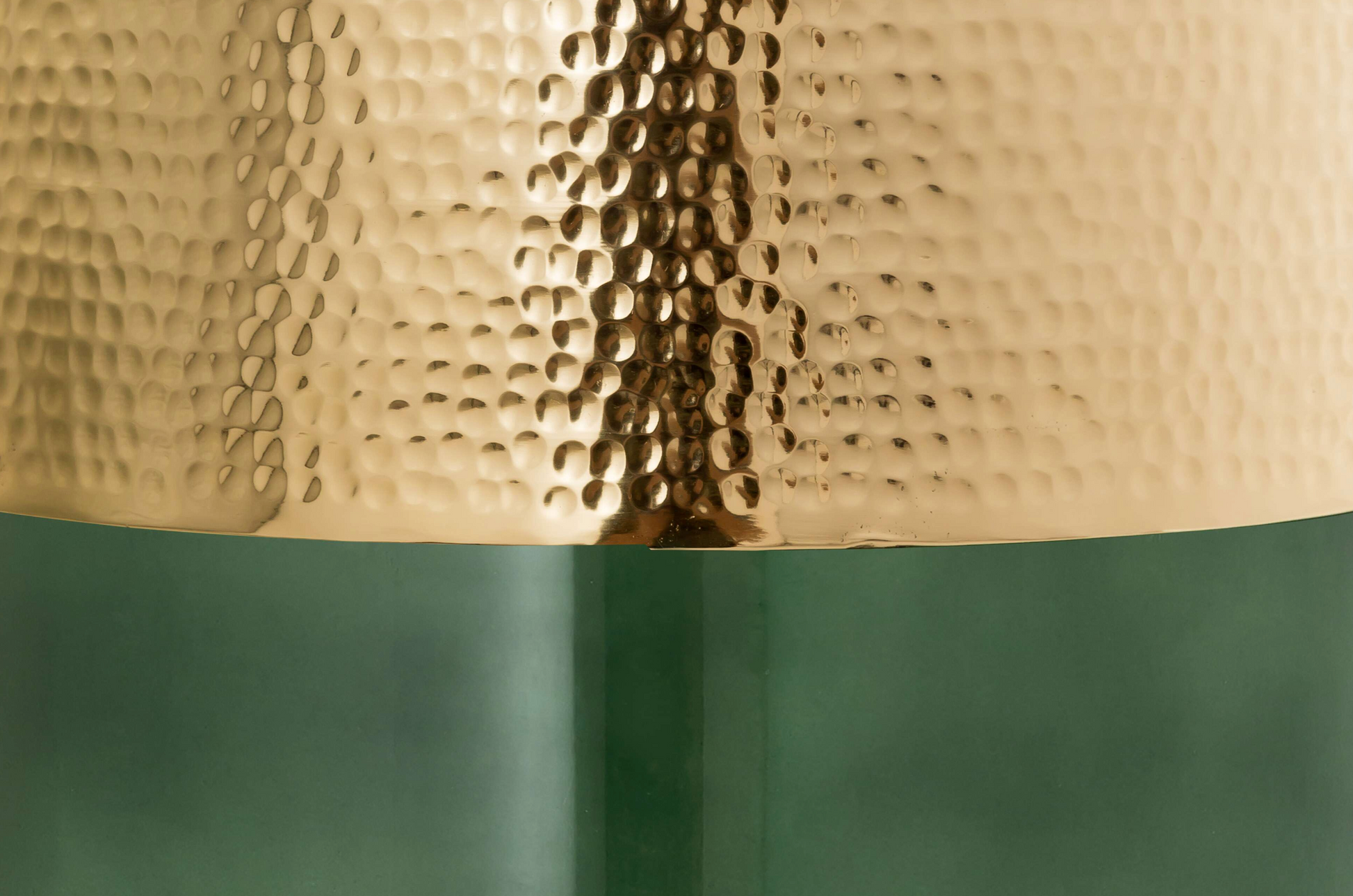 Hand-hammered design and a burst of translucent green come together in perfect harmony to create this side table.