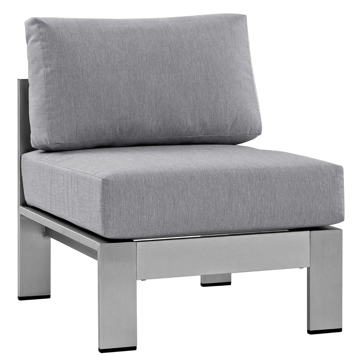 Grey and Silver Aluminum Armless Chair for Sectional Outdoor Sofa