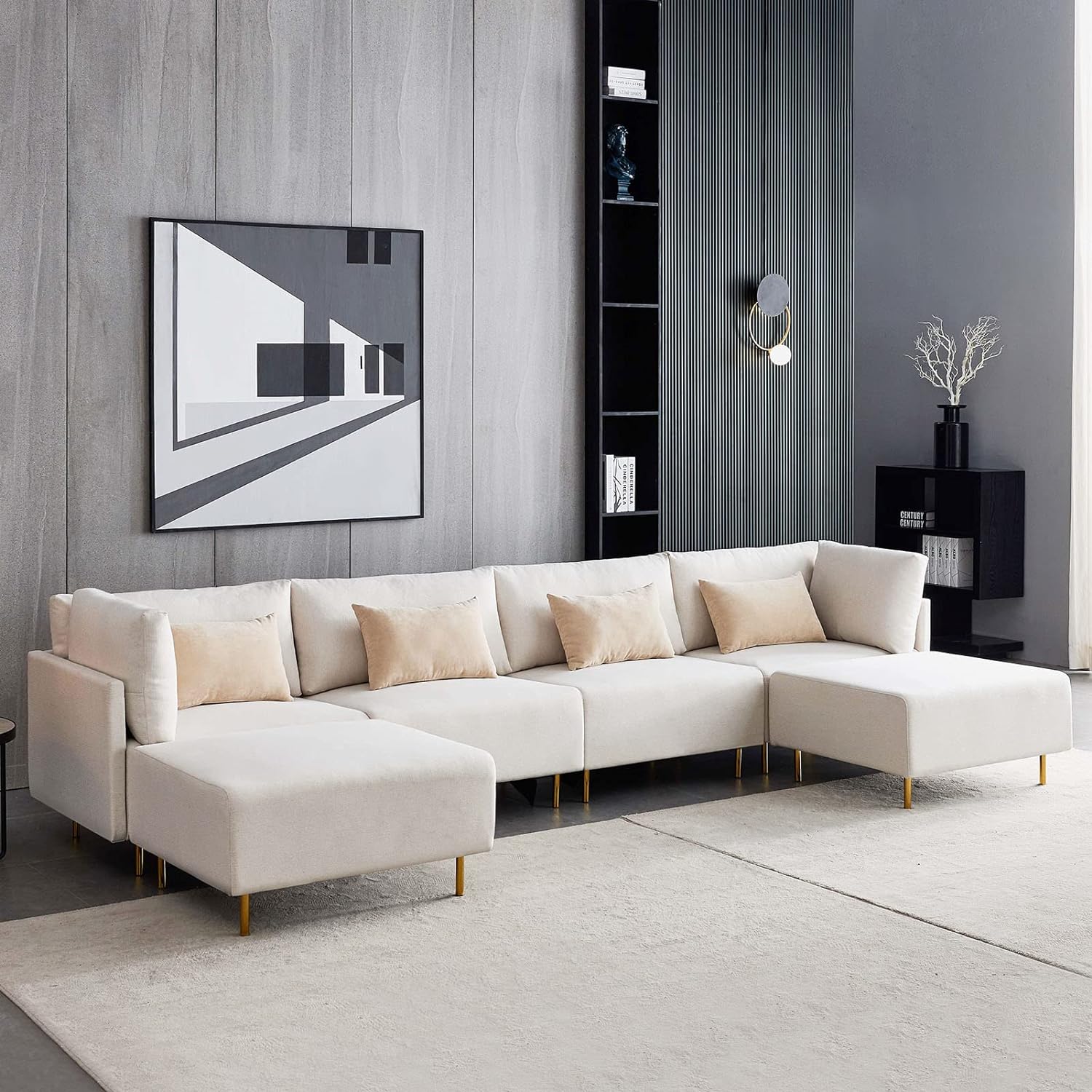 OFF WHITE MODULAR 6-PIECE SOFA WITH GOLD LEGS