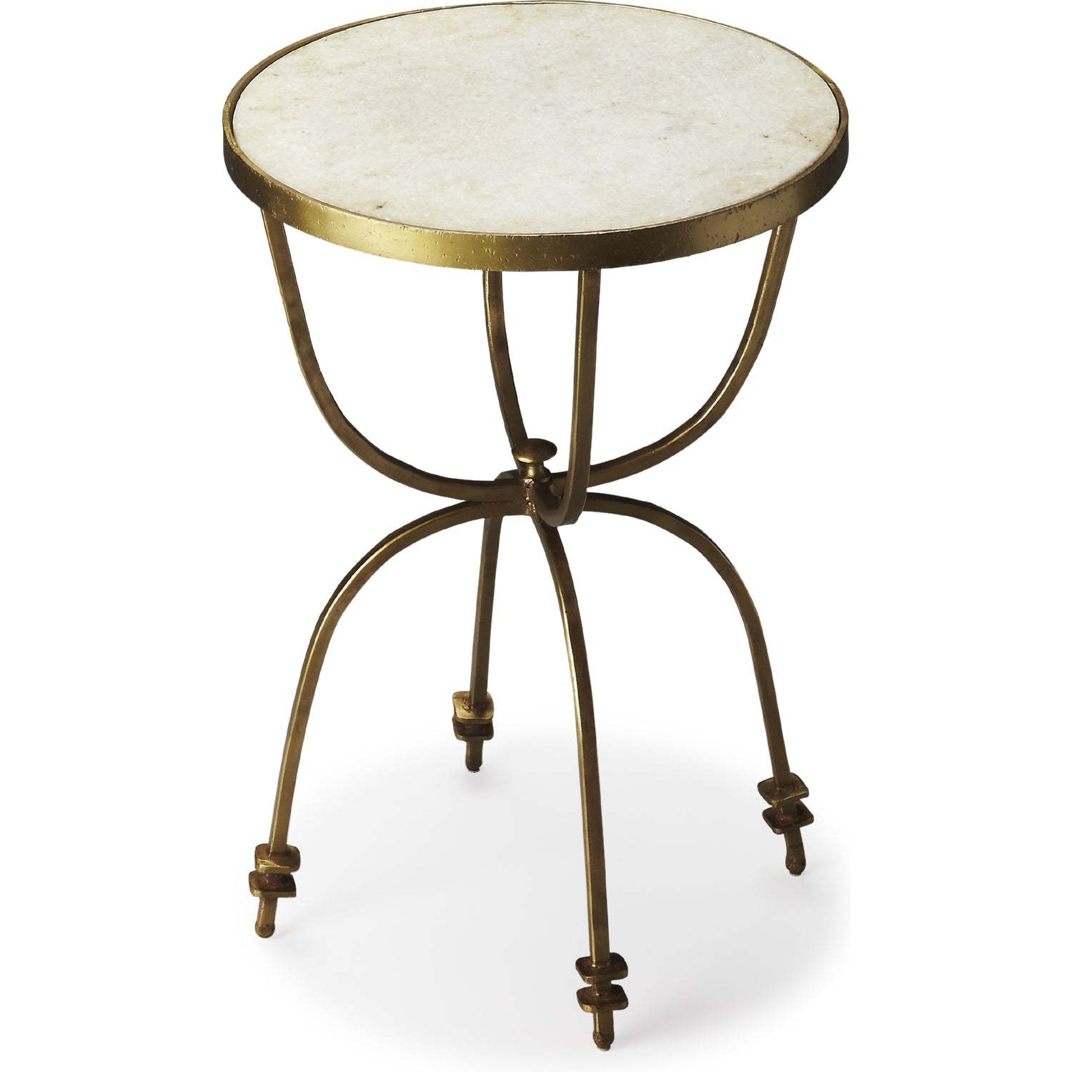 ROUND WHITE MARBLE AND GOLD SIDE TABLE
