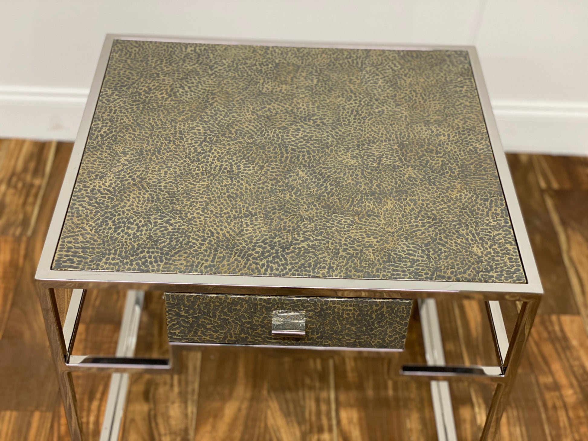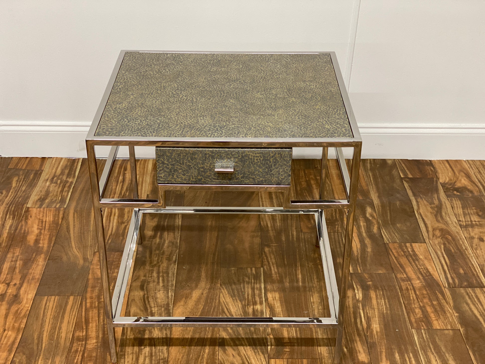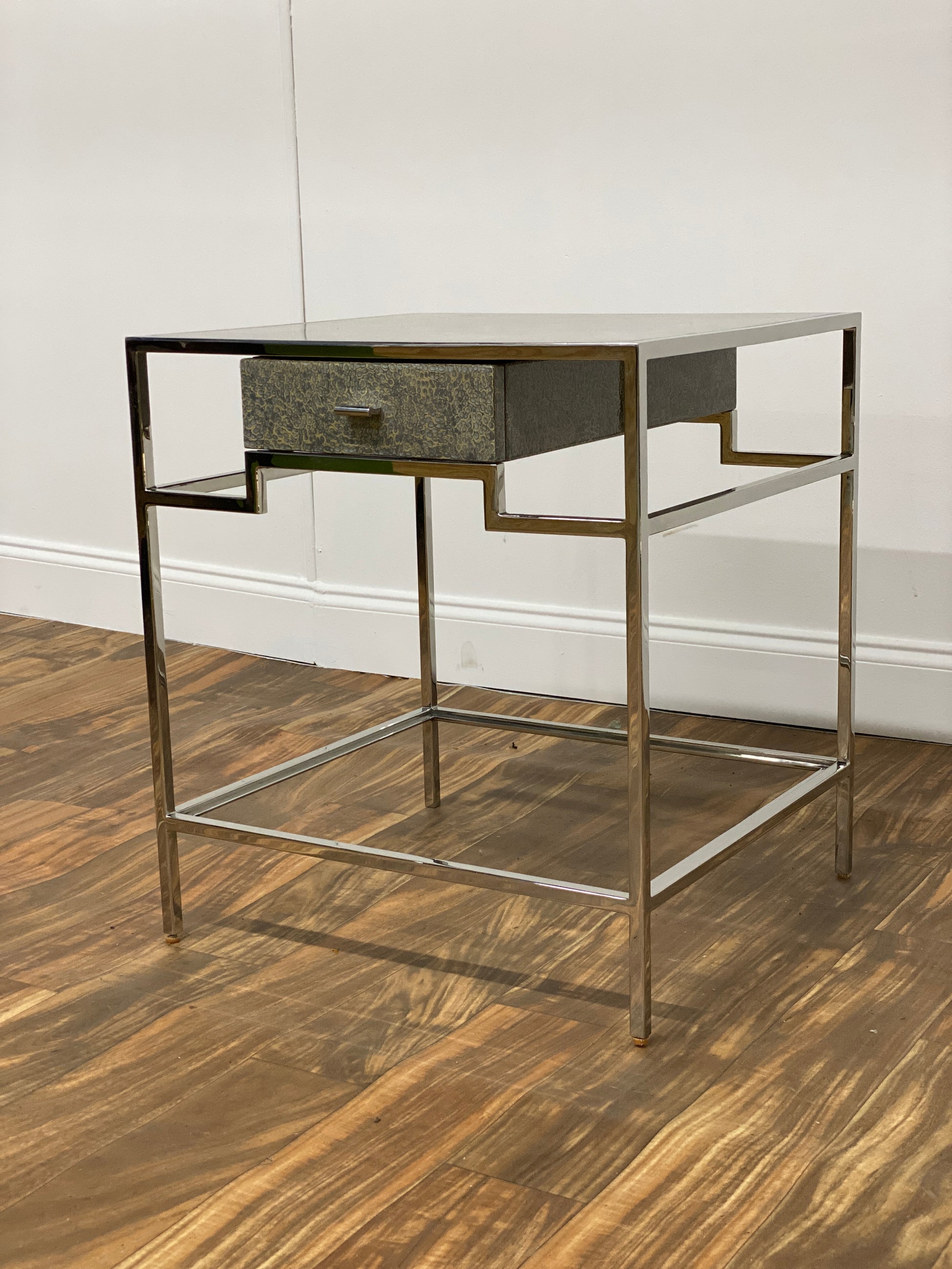 TEXTURED SILVER SIDE TABLE WITH DRAWER