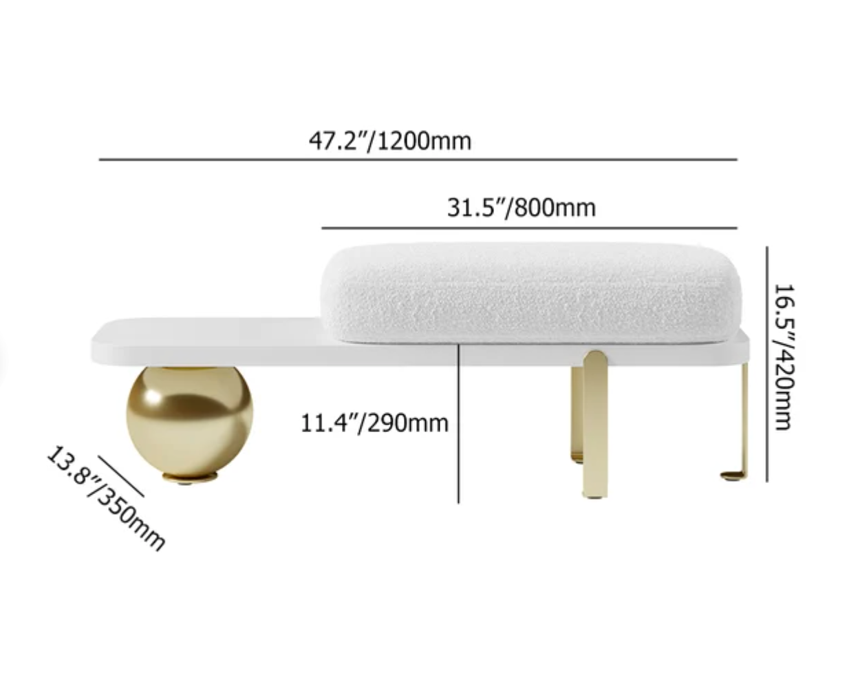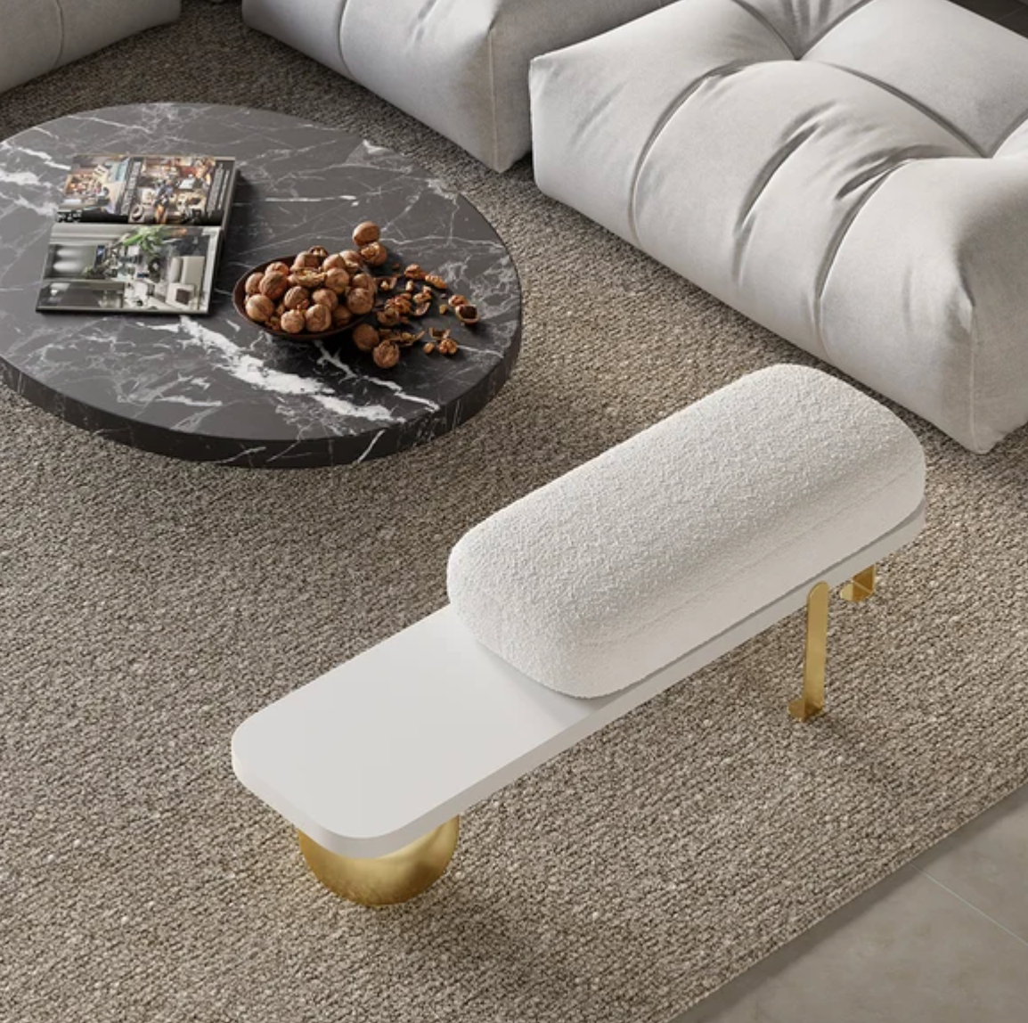 WHITE AND GOLD BOUCLE UPHOLSTERED BENCH
