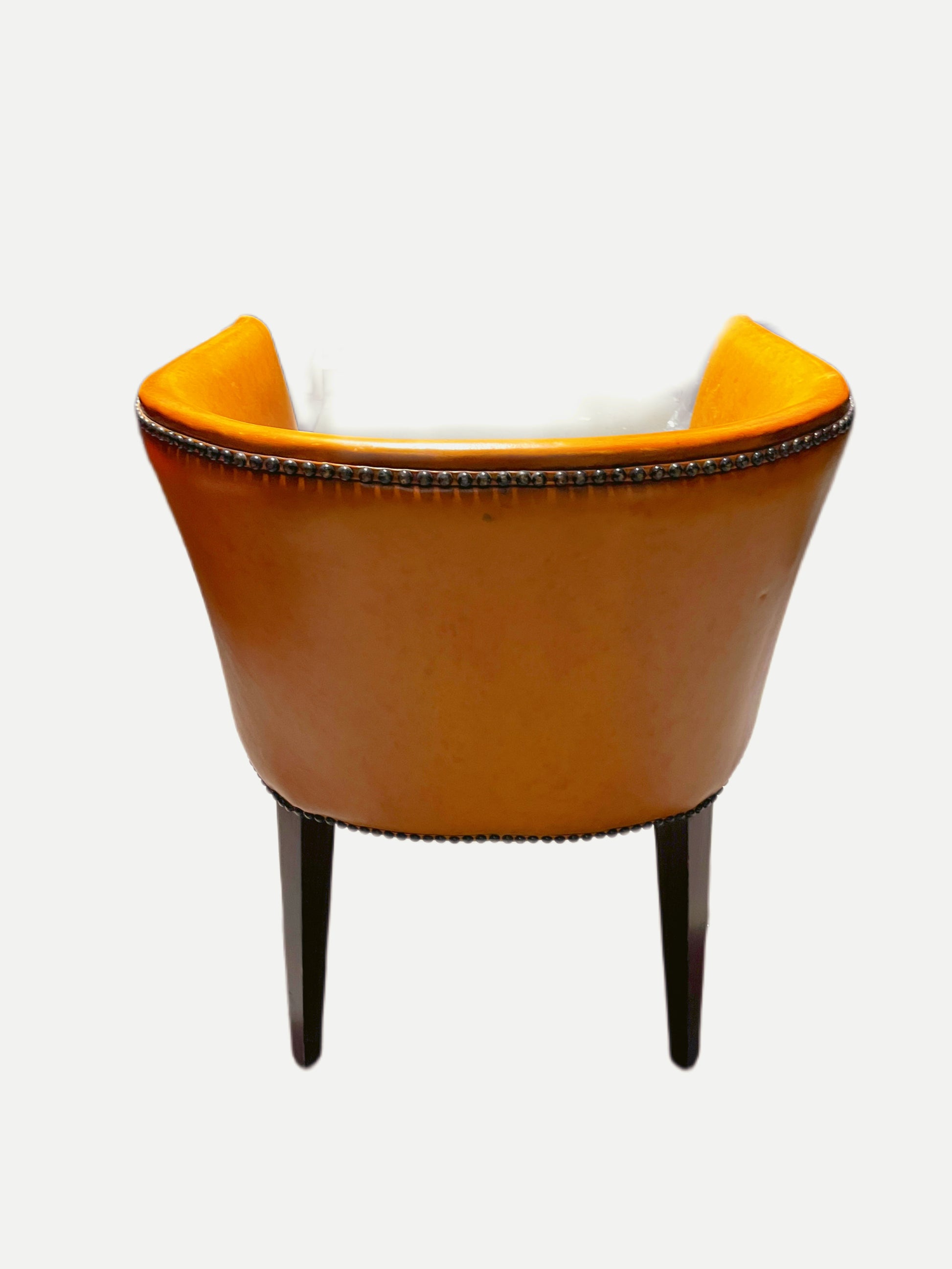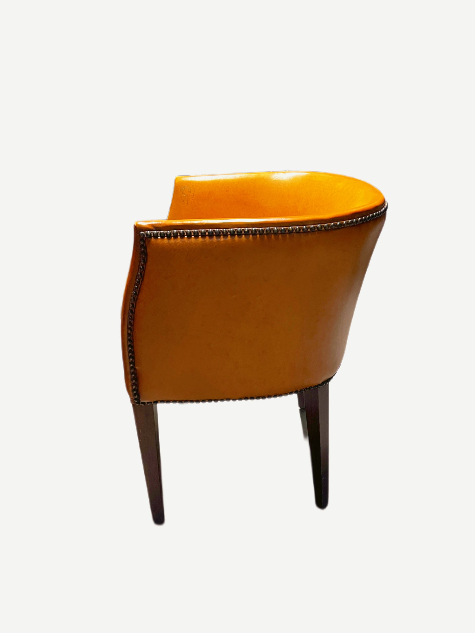 YELLOW ORANGE LEATHER CLUB CHAIR WITH RIVETS